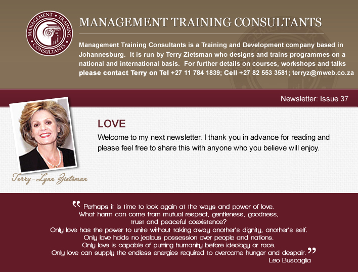Contact Terry on +27 82 553 3581 or Shayna on +27 79 299 6189 for any details or information on any of the courses. To read past newsletters or see what training programs are available, visit www.tlz.co.za