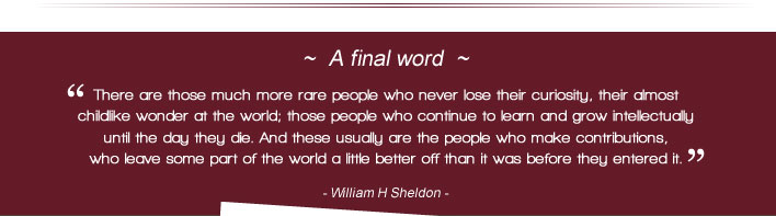 “Curiosity helps a person to think and expand possibilities beyond the ordinary. Asking WHY? fires the imagination. It leads to discovery. It opens up options. It takes people beyond the ordinary and leads to extraordinary living…”