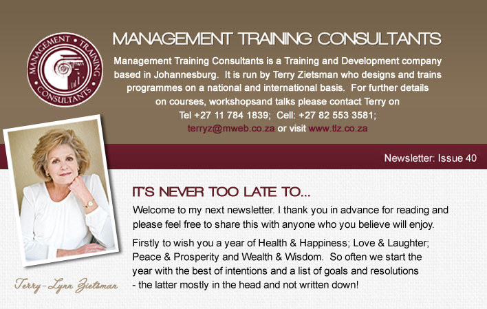 To read past newsletters or see what training programs are available, visit www.tlz.co.za